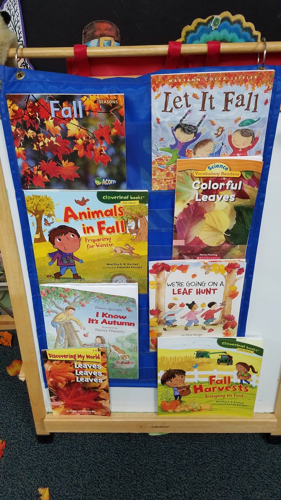 Fall officially began on September 22nd and the Discovery room went through a change over the weekend! All the sudden, the Discovery tree has several leaves of orange, red, and yellow - and there were bright, beautiful leaves all over the floor and bookshelves.